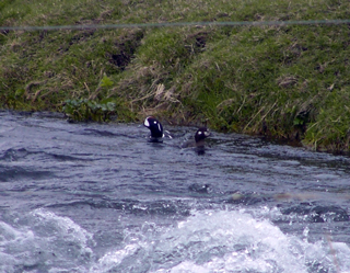 Wir umrunden an diesem Tag den Myvatn. Und entdecken unsere ersten Kragenenten. Lutz ist wie elektrisiert, als er sie an einem schnell fließenden Bach entdeckt. Wir pirschen uns heran und beobachten, wie das Entenpärchen elegant taucht und seine schillernden Farben beim Auftauchen präsentiert. Beide tragen die isländischen Nationalfarben und wirken wie perfekte Botschafter ihres Landes, eine Symphonie aus Wildnis und Energie und kraftvollen Farben.
