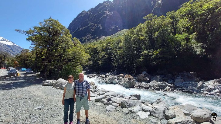 Die Milford Road führte uns bis auf 940 m über N.N.. Die Berge rückten hinter dem Pass „The Divide“ enger zusammen. Wasserfälle stürzten sich von beschneiten Bergen in die Schlucht, neben der sich die Straße entlangschlängelte und durch Baustellen immer wieder verengte. Die Entschleunigung fanden wir jetzt nicht schlecht, weil wir auf dieser Strecke nicht temporeich unterwegs sein wollten. Die Milford Road zählt zu den drei besonders gefährlichen Straßen auf Neuseeland mit dem prozentual höchsten Anteil tödlicher Unfälle. Das haben wir allerdings erst jetzt gelesen. Vielleicht besser so.Nebenbei hielten wir nach den Keas Ausschau, die sich hier aufhalten sollten.