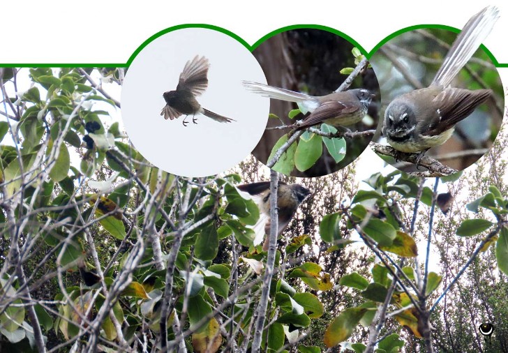 ↑ Pīwakawaka – Rhipidura fuliginosa – Neuseelandfächerschwanz – New Zealand fantail