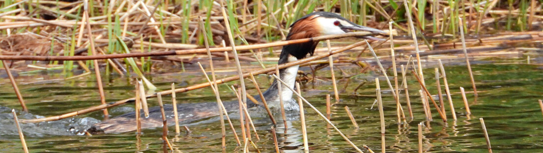 waren nebenan die Haubentaucher beschäftigt, ihre Nester für die neue Saison