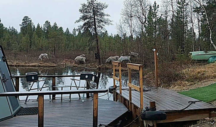 jedoch kein Fiebertraum, als Rentiere auftauchten und an den Autos und Hütten