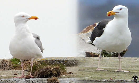 entdeckt, Silbermöwen und die noch größere Mantelmöwe standen am Kai, als ob