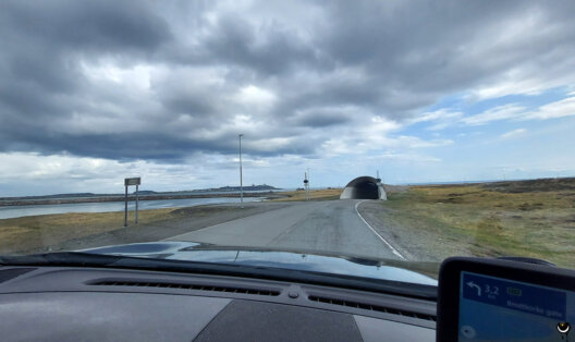 Was etwas anmutet wie ein Abflußrohr, ist der Tunneleingang des Unterseetunnels zur Insel Vardo. 1983 als erster Unterwassertunnel Norwegens eröffnet. Knapp 3 Kilometer lang verläuft er 88 Meter unter dem Meeresspiegel.