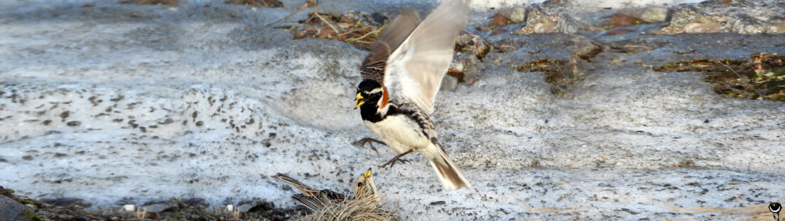 Übrigens entstand die Fotoserie mit den Spornammern auf der Rückfahrt von Båtsfjord. Wir hielten auf der Rückfahrt an derselben Stelle an, wo wir die Alpenschneehühner am Mittag gesehen und dann auch die Spornammern entdeckt hatten. Wir blieben nochmals lange trotz beißendem Wind und sahen ihnen zu.