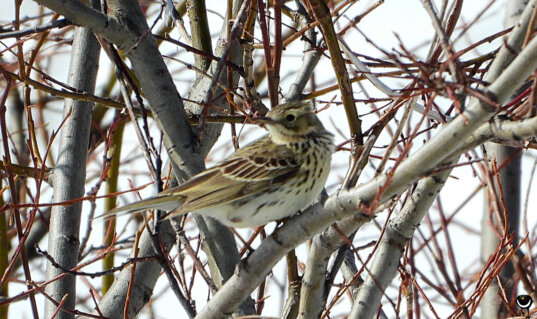 Auf dem Parkplatz flog der Wiesenpieper von Busch zu Busch.
